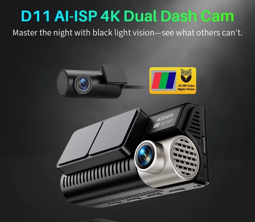 Відеореєстратор KAWA D11 AI-ISP 4K з двома камерами та сенсором Sony Starvis
