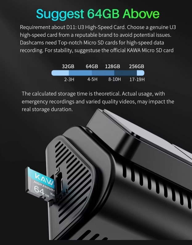 - Використання картки Micro SD від KAWA може забезпечити більш плавну роботу. (Картка Micro SD від KAWA на 64 ГБ буде безкоштовним подарунком для вас.)