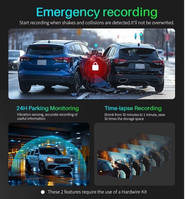 Автомобільний відеореєстратор KAWA починає запис, коли виявляє тряску та зіткнення. Гарантія на це не поширюється.