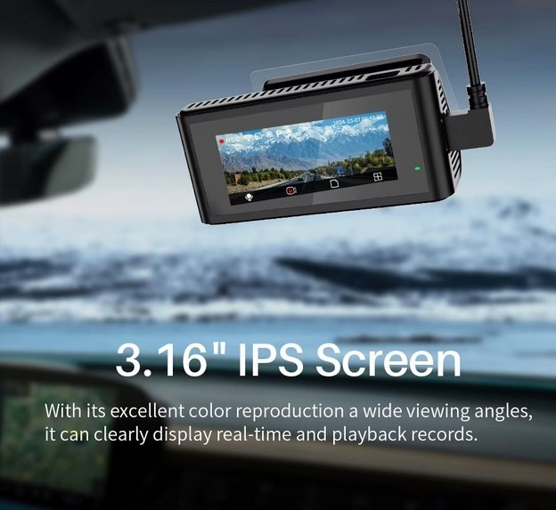 Ширококутний об’єктив пропонує ширше поле зору, дозволяючи захопити більше дорожніх пейзажів під час запису та покращуючи загальне покриття відеореєстратора.
