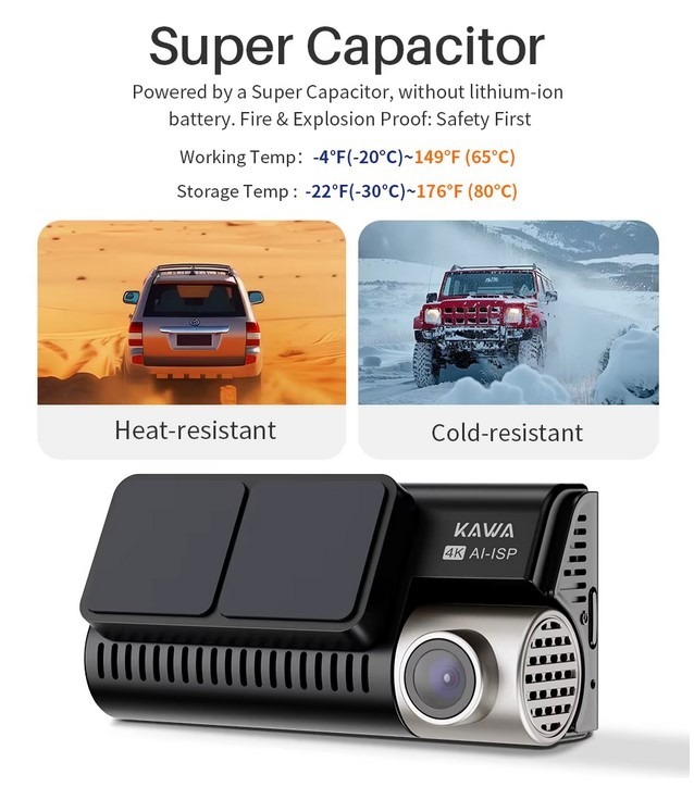 - Цей автомобільний відеореєстратор працює на суперконденсаторі, без літій-іонного акумулятора. Вогне- та вибухозахист: безпека понад усе.