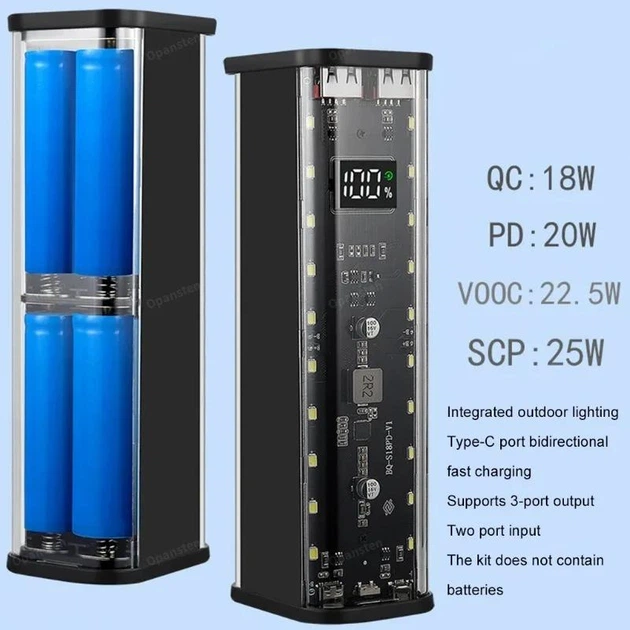 - Підтримка 8 акумуляторів 18650 (батареї в комплект не входять)