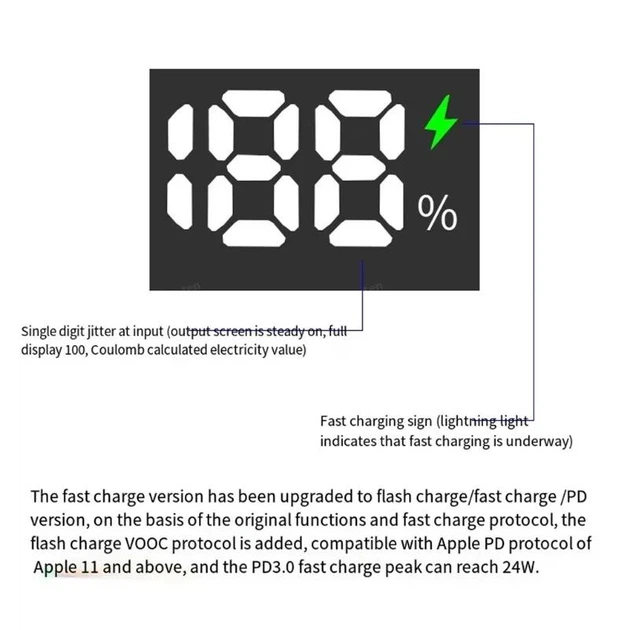 - Швидка зарядка: вихідний струм 5V/1A, 9V/2.2A, 12V/6.7A забезпечує швидке та ефективне живлення ваших пристроїв.