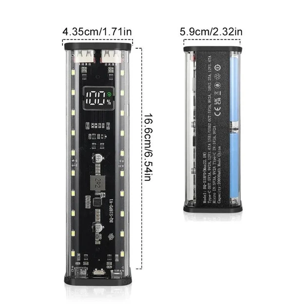 - 1 × прозорий корпус для 8 батарей 18650