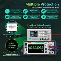 Меню русифіковано, можна змінити мову безпосередньо з дисплея пристрою. Є й додаткові опції у вигляді обмежень (OVP/OTP/OCP/OPP тощо) та захисту. Передбачено функцію побудови графіків роботи.