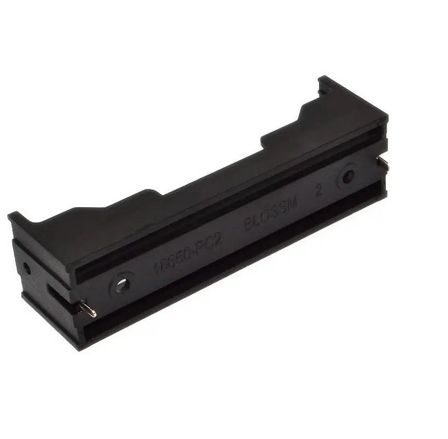 Корпус для одного акумуляторів 18650 із потужними контактами. Завдяки своїм компактним розмірам він відмінно підходить для вбудовування в різні види електроніки. Виготовлений з міцного ABS пластику, який витримує високі температури та має довговічність, за умови уникнення прямих сонячних променів та ультрафіолету. Контакти у відсіку виконані з нержавіючої сталі, додатково покритої міддю та нікелем для підвищення ефективності.