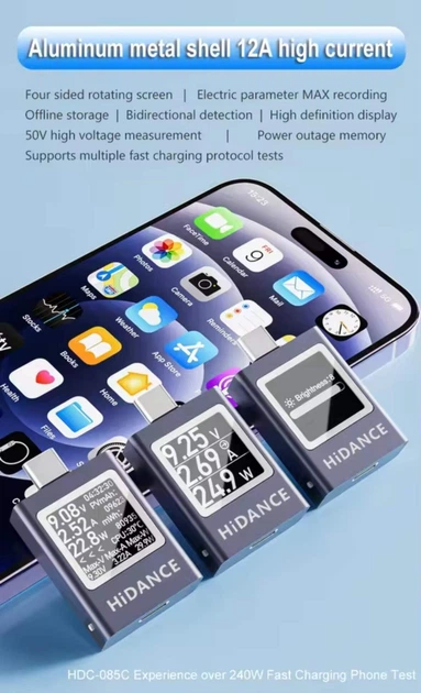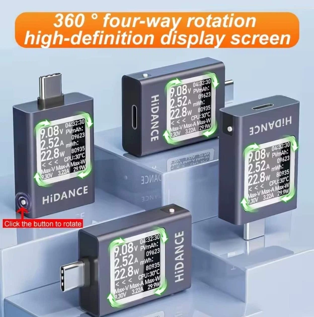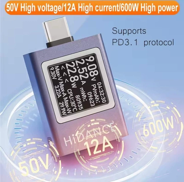 USB-C тестер Hidance HDC-085C, це компактний багатофункціональний тестер із OLED-дисплеєм.